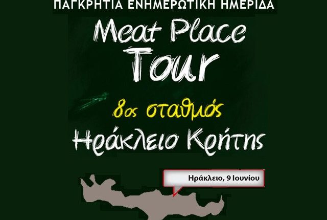 Η Κρήτη είναι ο 8ος σταθμός του Meat Place Tour, που διοργανώνει η εταιρεία o.mind Creatives και το περιοδικό για την αγορά κρέατος Meat Place. Οι κρεοπώλες της Μεγαλονήσου θα έχουν την ευκαιρία την Κυριακή 9 Ιουνίου στις 10.00 το πρωί να συμμετέχουν στην εκπαιδευτική ημερίδα που στοχεύει να τους ενημερώσει για τις νέες νομοθεσίες της αγοράς κρέατος και των κρεοπωλείων.