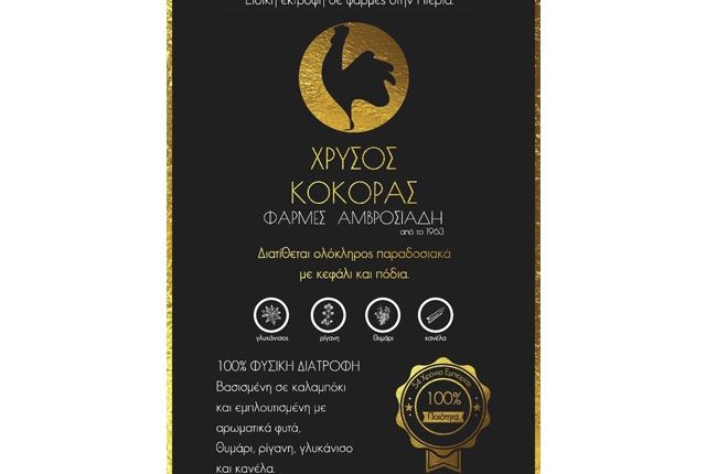 Η εταιρεία «Αμβροσιάδης Κοτόπουλα Εξοχής ΑΒΕΕ» με συνεχή παρουσία για πάνω από πέντε δεκαετίες στο χώρο των πουλερικών, φέτος παρουσιάζει τον μοναδικής νοστιμιάς και ποιότητας «χρυσό κόκορα».