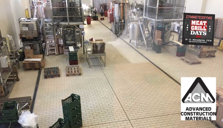 Ιδιαίτερα για τους χώρους επεξεργασίας τροφίμων που απαιτούν προστασία από μηχανικές, θερμικές και χημικές καταπονήσεις, ασφάλεια στην εργασία και εύκολο καθαρισμό, η ACM καλύπτει τις παραπάνω ανάγκες τους με το klinker πλακίδιο της INTERBAU-BLINK, τα επιφανειακά συστήματα αποστράγγισης της LEONI και τις ειδικές κόλλες και σιλικόνες της OTTOCHEMIE, υλικά υψηλής ποιότητας και τεχνολογίας σύμφωνα με τα Ευρωπαϊκά Πρότυπα.
