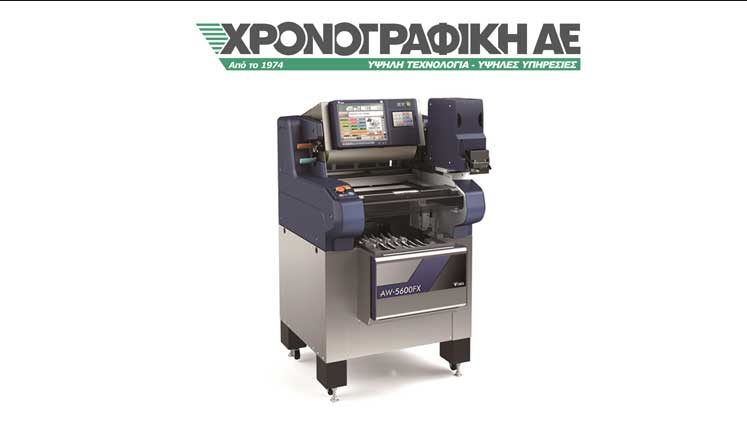 Από το 1980, η ΧΡΟΝΟΓΡΑΦΙΚΗ ΑΕ καινοτομεί στον τομέα της ηλεκτρονικής ζύγισης, τόσο για εμπορικές, όσο και για βιομηχανικές εφαρμογές. Έχοντας την αποκλειστική αντιπροσωπεία του ιαπωνικού οίκου DIGI TERAOKA SEIKO, παγκοσμίου ηγέτη του κλάδου, διαδραματίζει πρωταγωνιστικό ρόλο στην ελληνική αγορά . Η νέα σειρά 5600 συσκευαστικών μηχανών με την χρήση stretch film, που κατασκευάζει ο ιαπωνικός οίκος DIGI TERAOKA SEIKO για την συσκευασία τροφίμων σε δισκάκι, ήρθε να εμπλουτίσει την συλλογή των συσκευαστικών DIGI, που εδώ και χρόνια έχουν καθιερωθεί στην συνείδηση του επαγγελματία. Συγκεκριμένα, το μοντέλο AW 5600 FX αποτελεί την ιδανική λύση για τη βιομηχανία τροφίμων. Η συγκεκριμένη συσκευαστική μηχανή διαθέτει: Μηχανισμό εισαγωγής και ζύγισης του πακέτου • Κονσόλα χειρισμού – προγραμματισμού • Σύστημα συσκευασίας του προϊόντος • Μηχανισμό εκτύπωσης & έκδοσης της ετικέτας • Μηχανισμό τελικού κλεισίματος του πακέτου με ειδική πλάκα αντίσταση.