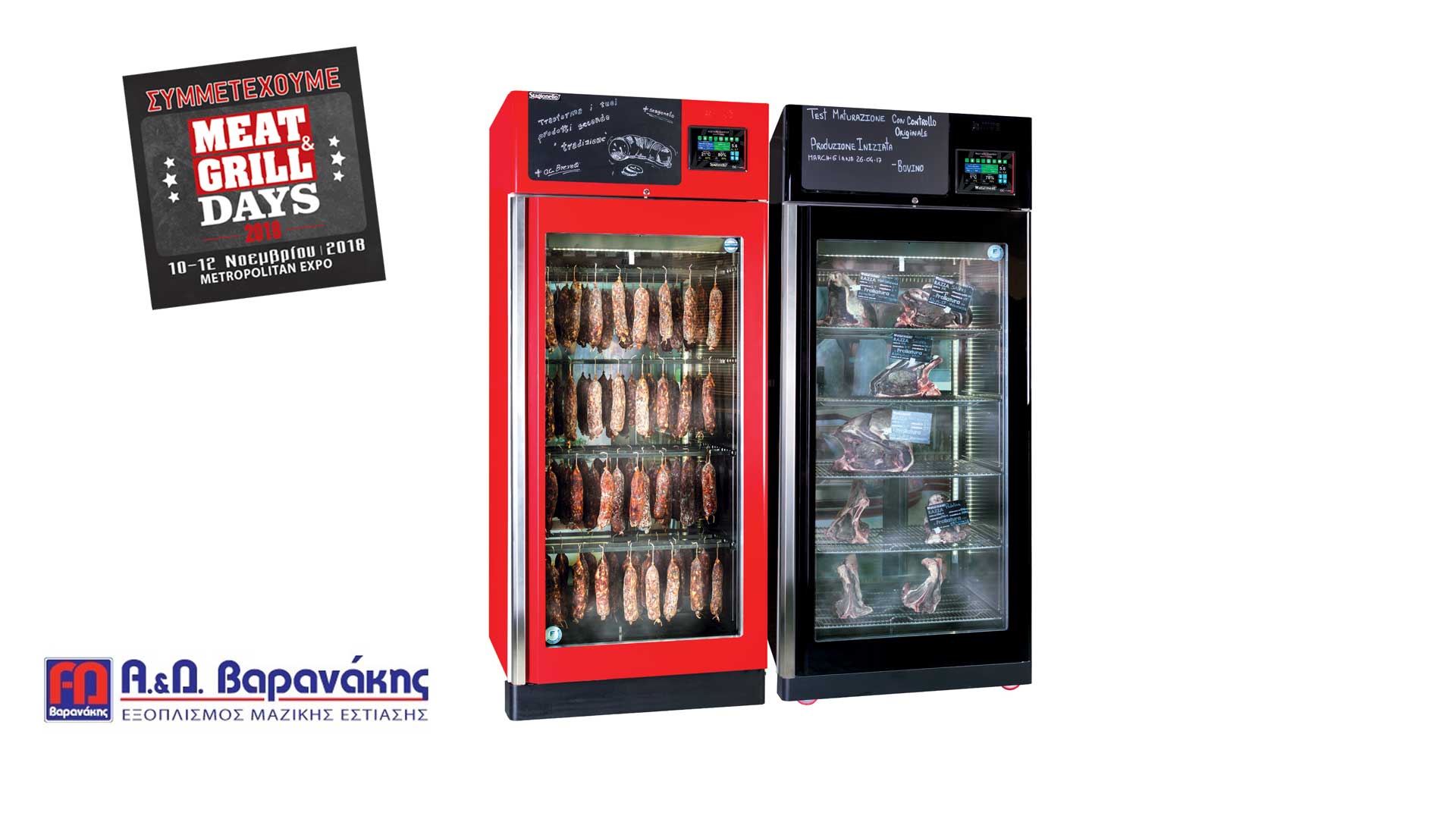 Στην έκθεση MEAT & GRILL DAYS 2018, ΒΑΡΑΝΑΚΗΣ Α.&Δ. ΟΕ θα παρουσιάσει τους θαλάμους ωρίμανσης κρεάτων & αλλαντικών MATURMEAT® και STAGIONELLO® του ιταλικού Οίκου Arredo Inox, τους οποίος διαθέτει αποκλειστικά στην Ελλάδα. Η φυσική μέθοδος ωρίμανσης είναι το μοναδικό σύστημα που είναι πιστοποιημένο από την Ευρωπαϊκή Ένωση.