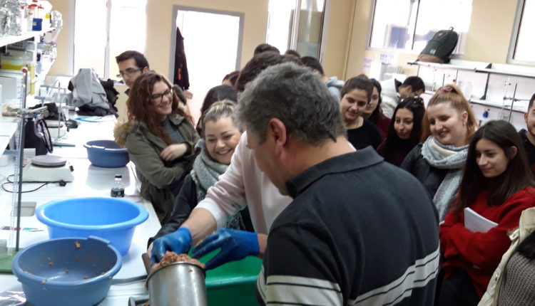 Με την καθοδήγηση του κ. Γαλανάκη οι φοιτητές παρασκεύασαν τα λουκάνικα μόνοι τους, τα οποία μετά το τέλος του κάθε τμήματος τους δόθηκαν για να τα δοκιμάσουν.