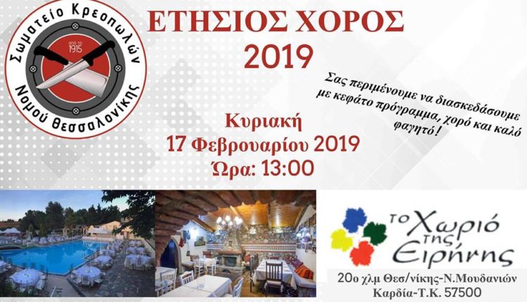 Ο ετήσιος χορός του Σωματείου Κρεοπωλών Ν. Θεσσαλονίκης την Κυριακή 17/2 στο «Χωριό της Ειρήνης»