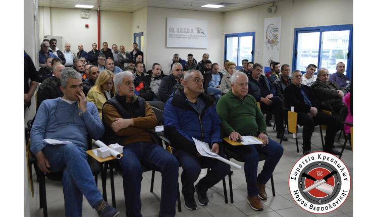 Με μεγάλη επιτυχία πραγματοποιήθηκε η Ετήσια Γενική Συνέλευση του Σωματείου Κρεοπωλών Νομού Θεσσαλονίκης το απόγευμα της Τετάρτης 10 Απριλίου 2019 στην αίθουσα συνεδριάσεων της Κεντρικής Κρεαταγοράς Θεσσαλονίκης.