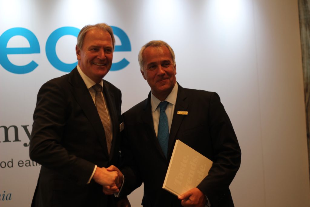 Τέλος, ο κ. Βορίδης τιμήθηκε από τον Πρόεδρο του Διεθνούς Εκθεσιακού Κέντρου Κολωνίας, Γκέραλντ Μπαίζε και συναντήθηκε με πληθώρα σημαντικών εκπροσώπων του κλάδου Τροφίμων και Ποτών.