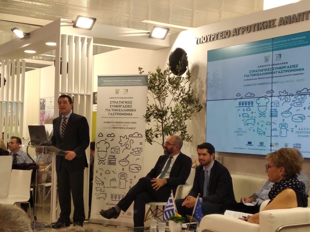 Με επιτυχία και πολύ μεγάλη συμμετοχή, πραγματοποιήθηκε το Σάββατο 1η Φεβρουαρίου 2020, στο χώρο του Περιπτέρου του υπουργείου Αγροτικής Ανάπτυξης και Τροφίμων, η εκδήλωση με θέμα «Στρατηγικές Συνεργασίες για την ελληνική γαστρονομία» η οποία συνδιοργανώθηκε από το Εθνικό Αγροτικό Δίκτυο του ΠΑΑ και τον ΕΛΓΟ ΔΗΜΗΤΡΑ.