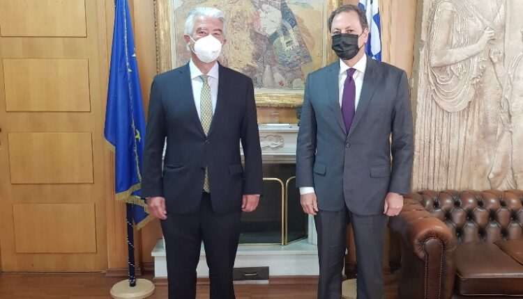 Οι σημαντικές δυνατότητες περαιτέρω προώθησης των ελληνικών αγροδιατροφικών προϊόντων στην αγορά της Γερμανίας και η συνεργασία στον τομέα της αγροτικής εκπαίδευσης βρέθηκαν στο επίκεντρο της συνάντησης του Υπουργού Αγροτικής Ανάπτυξης και Τροφίμων Σπήλιου Λιβανού και του Πρεσβευτή της Γερμανίας στην Ελλάδα Έρνστ Ρέιχελ που πραγματοποιήθηκε σήμερα στο ΥπΑΑΤ.