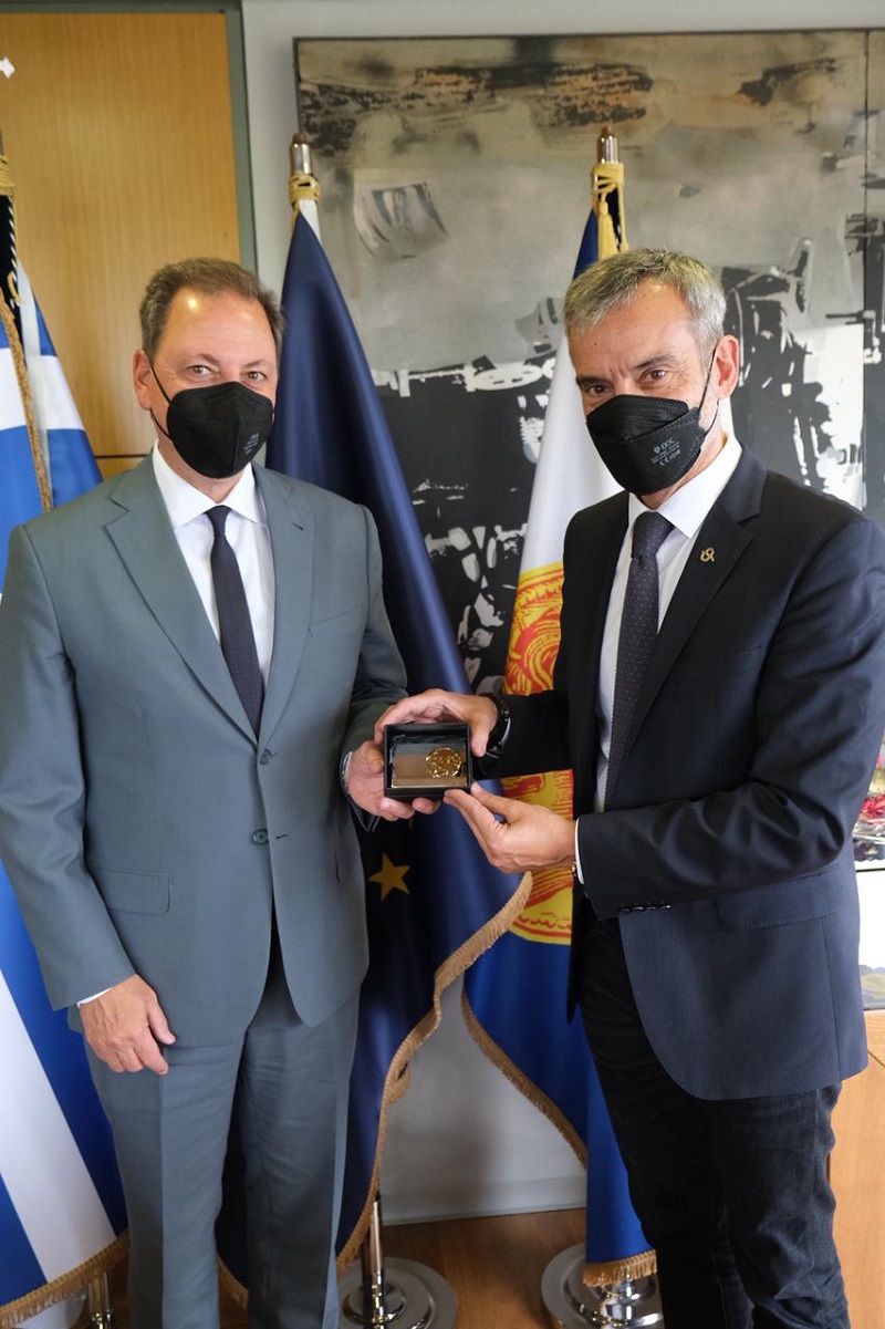 Ακολούθησε συνάντηση του υπουργού με τον δήμαρχο Θεσσαλονίκης, Κωνσταντίνο Ζέρβα, κατά τη διάρκεια της οποίας εξετάστηκαν οι δυνατότητες συνεργασίας σε θέματα κοινού ενδιαφέροντος. Στη συνάντηση παρευρέθηκαν η γενική γραμματέας του υπουργείου, Χριστιάνα Καλογήρου και ο Γ.Γ. του Δήμου Θεσσαλονίκης, Ευθύμης Φωτόπουλος.