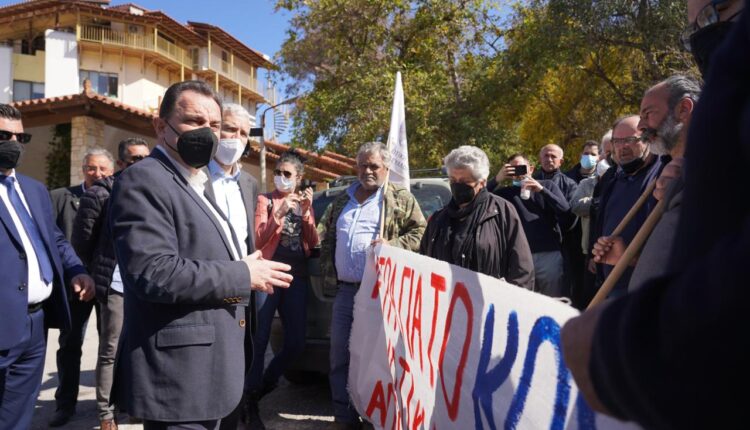 Στη συνέχεια πραγματοποιήθηκε ευρεία σύσκεψη με εκπροσώπους αγροτικών φορέων, γεωργούς, κτηνοτρόφους και μελισσοκόμους, με τη συμμετοχή των βουλευτών του Νομού Χανίων, Ντόρας Μπακογιάννη και Μανούσου Βολουδάκη, καθώς και του Γ.Γ. του ΥπΑΑΤ, Κώστα Μπαγινέτα.