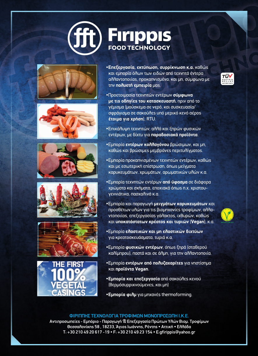 Λύσεις για την αλλαντοποιία δίνει η ΦΙΡΙΠΠΗΣ ΤΕΧΝΟΛΟΓΙΑ ΤΡΟΦΙΜΩΝ στην 7η έκθεση MDF EXPO