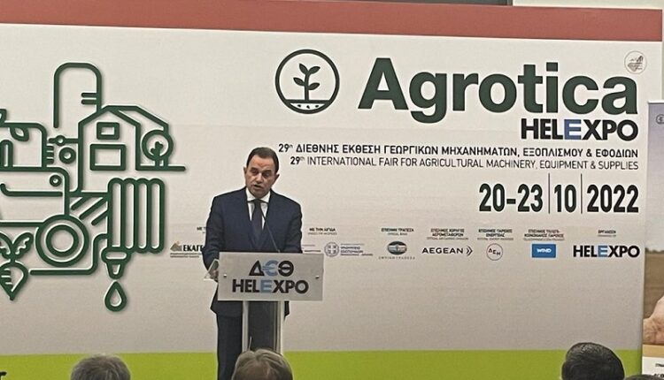 Μιλώντας στην 29η Agrotica, την οποία διοργανώνει στο Διεθνές Κέντρο Θεσσαλονίκης η ΔΕΘ-Helexpo και θα διαρκέσει έως και τις 23 Οκτωβρίου, ο υπουργός ανέφερε ότι η μεγάλη συμμετοχή εκθετών, δείχνει και τον εξωστρεφή χαρακτήρα της ελληνικής αγροτικής οικονομίας, της οποίας όπως είπε: «Οι εξαγωγές των αγροτικών προϊόντων είναι αυξημένες κατά 7,2% στο πρώτο 8μηνο του έτους, ενώ πλέον αντιστοιχούν στο 17,6% του συνόλου των εξαγωγών της χώρας μας».