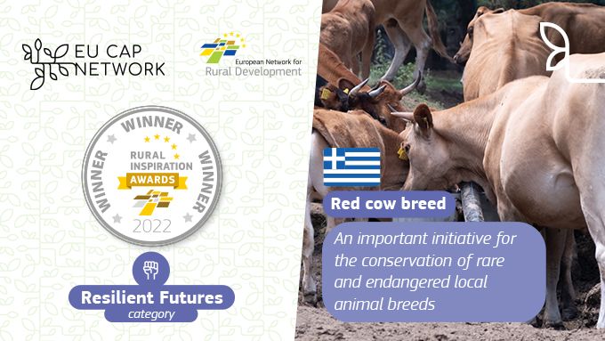 Υπενθυμίζεται ότι χρηματοδοτούμενο από το ΠΑΑ 2014-2020 έργο: «Διατήρηση ελληνικής Κόκκινης Φυλής Καστοριάς-Κρυσταλλοπηγής», βραβεύθηκε στα Rural Inspiration Awards 2022 στην κατηγορία του (Resilient Futures-Ανθεκτικό Μέλλον) και πήρε το πρώτο βραβείο. Η βράβευση πραγματοποιήθηκε στις Βρυξέλλες, στο πλαίσιο του διαγωνισμού που διοργανώνεται κάθε χρόνο από το Ευρωπαϊκό Δίκτυο Αγροτικής Ανάπτυξης των Κρατών-Μελών της ΕΕ.
