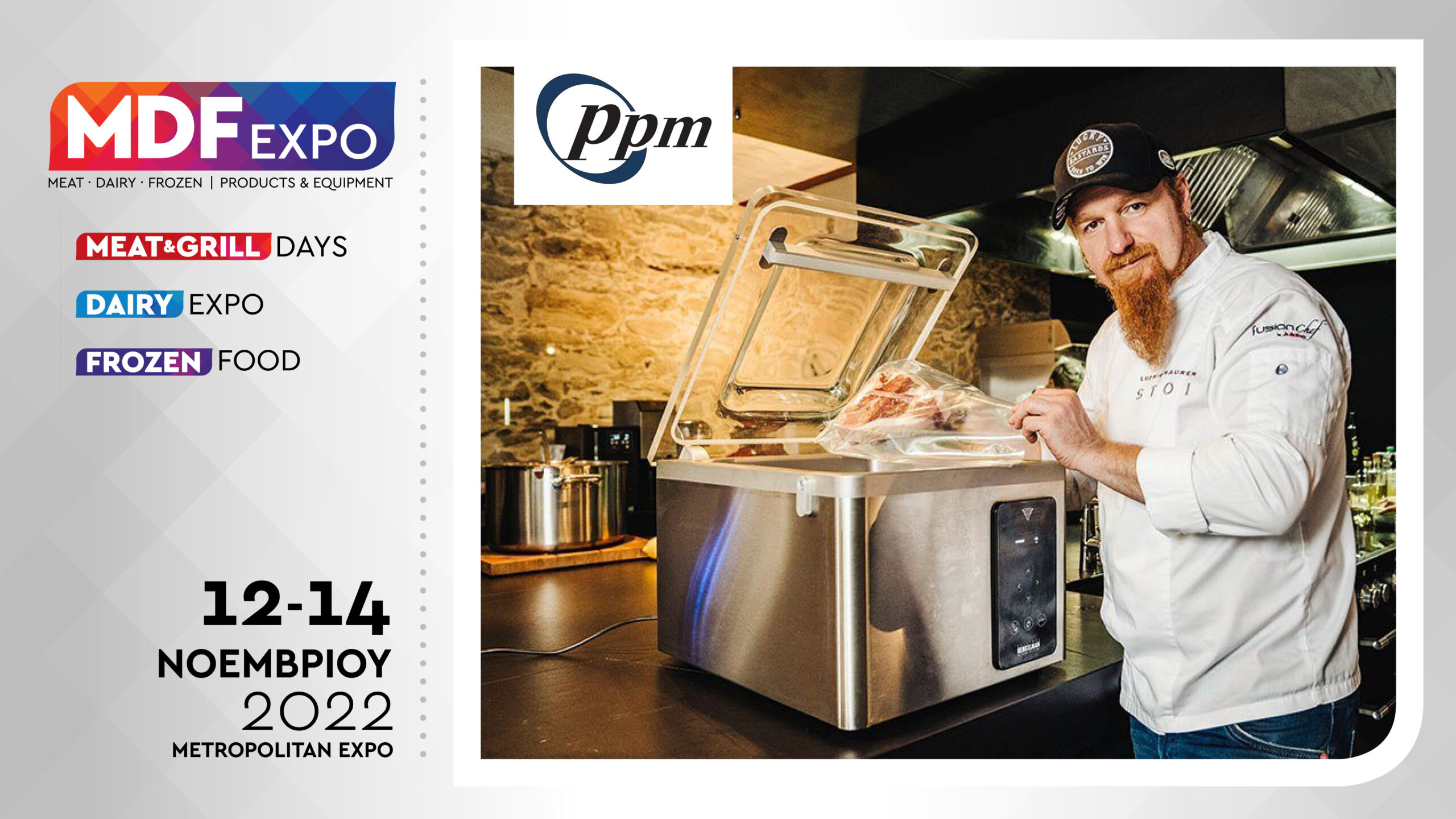 Μια ευρεία γκάμα μηχανημάτων τελευταίας τεχνολογίας που αφορούν την επεξεργασία και συσκευασία στην βιομηχανία τροφίμων θα παρουσιάσει στο περίπτερό της η εταιρεία PPM (Processing Packaging Machines IKE) στην 7η έκθεση MDF EXPO, στις 12-14 Νοεμβρίου 2022, στο Metropolitan Expo.