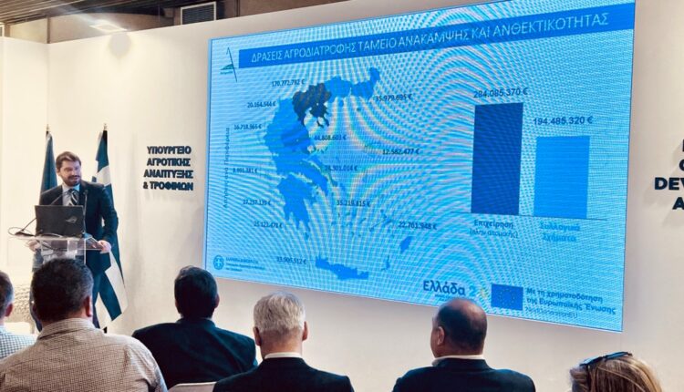 Την επαναπροκήρυξη των Υποέργων: «Καινοτομία και Πράσινη Μετάβαση στη Μεταποίηση Αγροτικών Προϊόντων», «Εκσυγχρονισμός του Πρωτογενούς Τομέα» και «Αναδιάρθρωση Καλλιεργειών» προανήγγειλε ο Γενικός Γραμματέας Αγροτικής Πολιτικής και Διεθνών Σχέσεων, Κων/νος Μπαγινέτας κατά την ομιλία του σε Ενημερωτική Ημερίδα με τίτλο: «Έξι Δράσεις Ανθεκτικότητας με τον Πρωτογενή Τομέα στο Επίκεντρο». που διοργάνωσε στη Θεσσαλονίκη η Υπηρεσία Διαχείρισης Έργων Ταμείου Ανάκαμψης του ΥπΑΑΤ στο πλαίσιο της 12ης «Zootechnia».