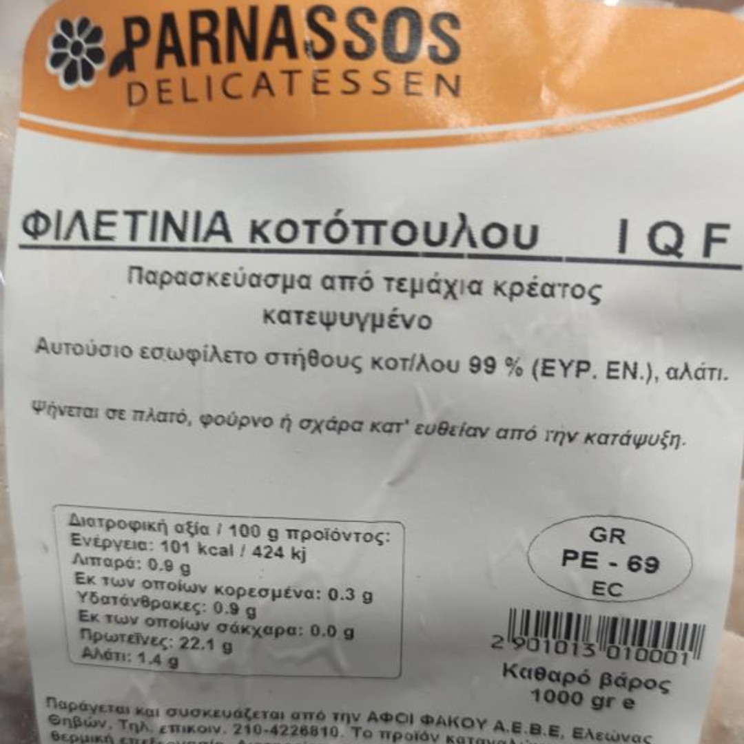 Αναλυτικότερα, ο Ε.Φ.Ε.Τ. και ειδικότερα η Περιφερειακή Διεύθυνση Κρήτης, προέβη σε δειγματοληψία του προϊόντος, «ΦΙΛΕΤΙΝΙΑ ΚΟΤΟΠΟΥΛΟΥ IQF PARNASSOS DELICATESSEN κατεψυγμένο», καθ. βάρους 1000g, αριθ. παρτίδας: 13062023, ημ. ανάλωσης κατά προτίμηση πριν από το τέλος: 06/2024, που παρασκευάζεται από την εταιρεία «ΑΦΟΙ ΦΑΚΟΥ ΑΕΒΕ», στον Ελαιώνα Θηβών.