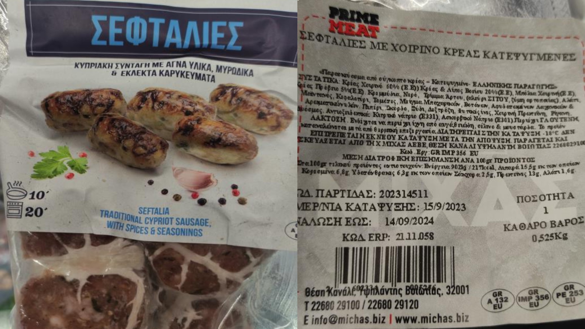 Επιπλέον, ο Ε.Φ.Ε.Τ. και ειδικότερα η Περιφερειακή Διεύθυνση Κρήτης, προέβη σε δειγματοληψία του προϊόντος, «ΣΕΦΤΑΛΙΕΣ ΜΕ ΧΟΙΡΙΝΟ ΚΡΕΑΣ ΚΑΤΕΨΥΓΜΕΝΕΣ», με αριθ. παρτίδας: 202314511 και ημ. ανάλωσης έως: 14.09.24, που παρασκευάζεται από την εταιρεία «Χ. ΜΙΧΑΣ ΑΕΒΕ» στη Θέση Κανάλι, Υψηλάντη Βοιωτίας.