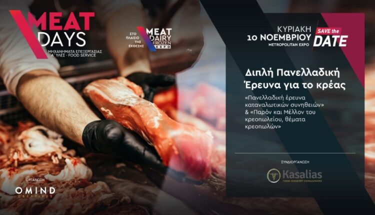 Τα σωματεία κρεοπωλών Θεσσαλονίκης και Ηρακλείου Κρήτης, σε συνεργασία με την OMIND CREATIVES και την KASALIAS Food Industry Consultants, θα παρουσιάσουν στην 8η έκθεση MEAT DAYS τις πανελλαδικές έρευνες που διενεργήθηκαν για τον προσδιορισμό των καταναλωτικών συνηθειών που αφορούν στην αγορά του κρέατος.