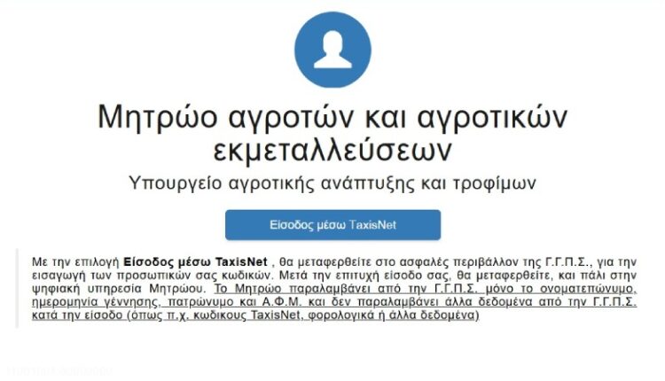 Σε λειτουργία τέθηκε από την 5η Φεβρουαρίου η δυνατότητα ψηφιακής εκτύπωσης της βεβαίωσης εγγραφής στο Μητρώο Αγροτών και Αγροτικών Εκμεταλλεύσεων (ΜΑΑΕ), με την ιδιότητα του «επαγγελματία αγρότη» ή του «κατόχου αγροτικής εκμετάλλευσης».